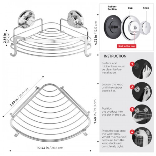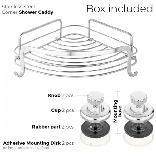 CORROSION RESISTANT SHOWER CADDY: Rustproof and corrosion resistant construction prevents rusting. Corner Shower Caddy is made up of Chrome plated stainless steel.
